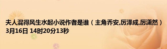 你們好,今天木子分享夫人混得風(fēng)生水起小說(shuō)作者是誰(shuí),跟隨我一起瞧瞧吧!