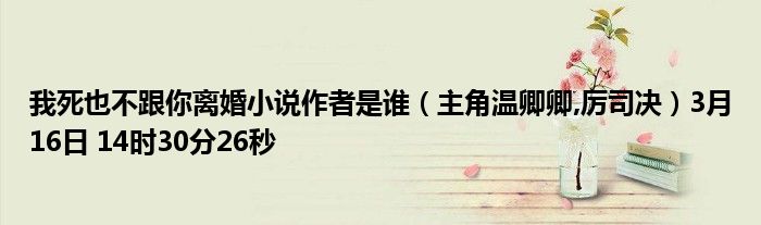 你們好,今天木子分享我死也不跟你離婚小說作者是誰,跟隨我一起瞧瞧吧!