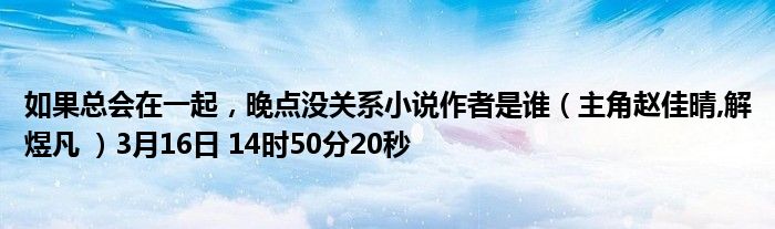 你們好,今天木子分享如果總會(huì)在一起,晚點(diǎn)沒(méi)關(guān)系小說(shuō)作者是誰(shuí),跟隨我一起瞧瞧吧!