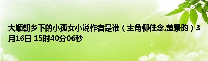 你們好,今天木子分享大順朝鄉(xiāng)下的小孤女小說(shuō)作者是誰(shuí),跟隨我一起瞧瞧吧!