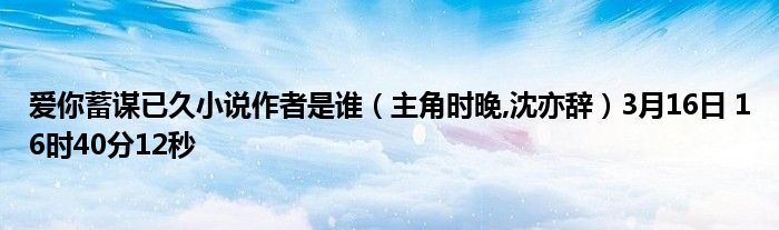 你們好,今天木子分享愛你蓄謀已久小說作者是誰,跟隨我一起瞧瞧吧!