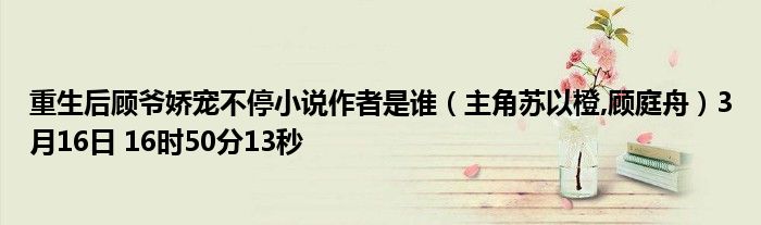 你們好,今天木子分享重生后顧爺嬌寵不停小說作者是誰,跟隨我一起瞧瞧吧!