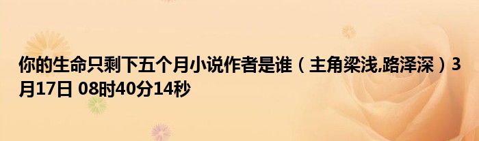 你們好,今天木子分享你的生命只剩下五個月小說作者是誰,跟隨我一起瞧瞧吧!