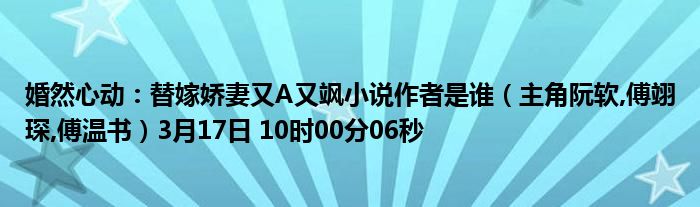 你們好,今天木子分享婚然心動(dòng):替嫁嬌妻又A又颯小說作者是誰,跟隨我一起瞧瞧吧!