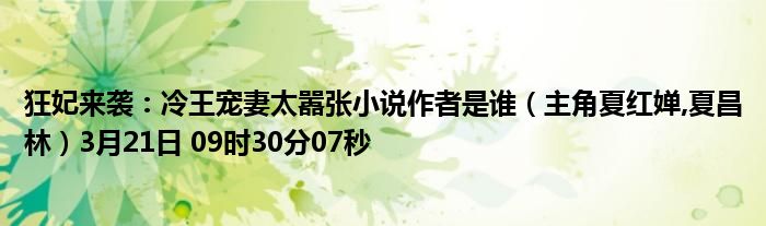 你們好,今天木子分享狂妃來襲:冷王寵妻太囂張小說作者是誰,跟隨我一起瞧瞧吧!