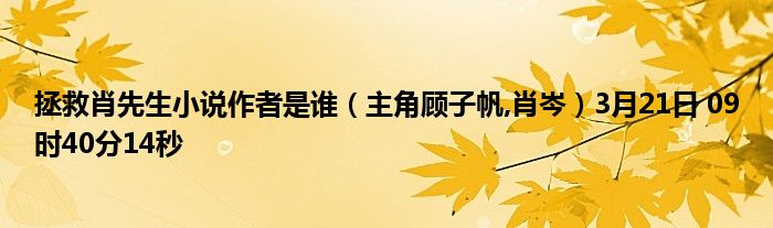 你們好,今天木子分享拯救肖先生小說作者是誰,跟隨我一起瞧瞧吧!
