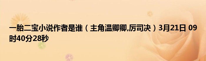 你們好,今天木子分享一胎二寶小說作者是誰,跟隨我一起瞧瞧吧!