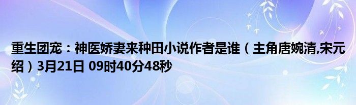 你們好,今天木子分享重生團(tuán)寵:神醫(yī)嬌妻來(lái)種田小說(shuō)作者是誰(shuí),跟隨我一起瞧瞧吧!