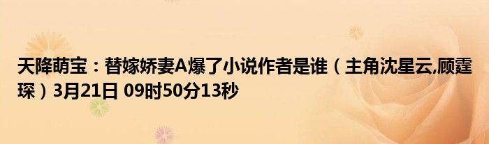 你們好,今天木子分享天降萌寶:替嫁嬌妻A爆了小說作者是誰,跟隨我一起瞧瞧吧!
