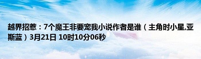 你們好,今天木子分享越界招惹:7個魔王非要寵我小說作者是誰,跟隨我一起瞧瞧吧!