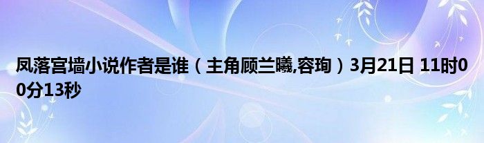 你們好,今天木子分享鳳落宮墻小說(shuō)作者是誰(shuí),跟隨我一起瞧瞧吧!