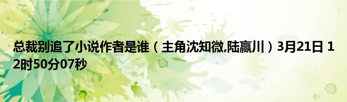 你們好,今天木子分享總裁別追了小說作者是誰,跟隨我一起瞧瞧吧!