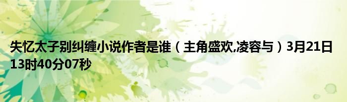你們好,今天木子分享失憶太子別糾纏小說作者是誰,跟隨我一起瞧瞧吧!