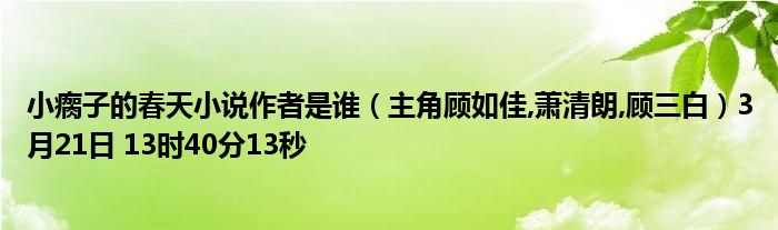 你們好,今天木子分享小瘸子的春天小說作者是誰(shuí),跟隨我一起瞧瞧吧!
