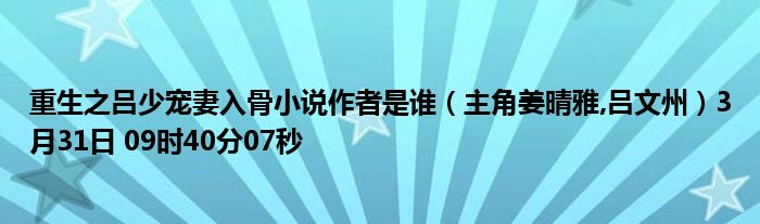 你們好,今天木子分享重生之呂少寵妻入骨小說作者是誰,跟隨我一起瞧瞧吧!