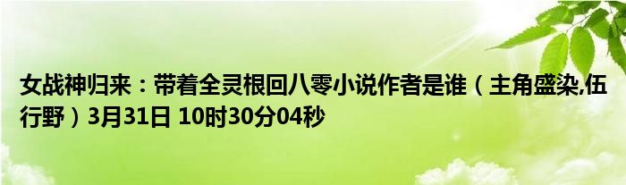 你們好,今天木子分享女戰(zhàn)神歸來:帶著全靈根回八零小說作者是誰,跟隨我一起瞧瞧吧!