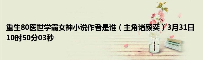 你們好,今天木子分享重生80醫(yī)世學(xué)霸女神小說作者是誰,跟隨我一起瞧瞧吧!