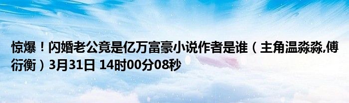 你們好,今天木子分享驚爆!閃婚老公竟是億萬富豪小說作者是誰,跟隨我一起瞧瞧吧!