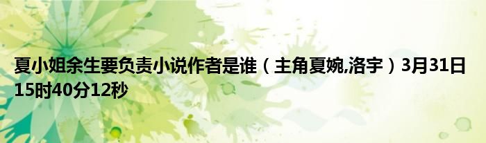 你們好,今天木子分享夏小姐余生要負(fù)責(zé)小說作者是誰,跟隨我一起瞧瞧吧!