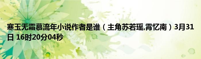 你們好,今天木子分享寒玉無霜慕流年小說作者是誰,跟隨我一起瞧瞧吧!