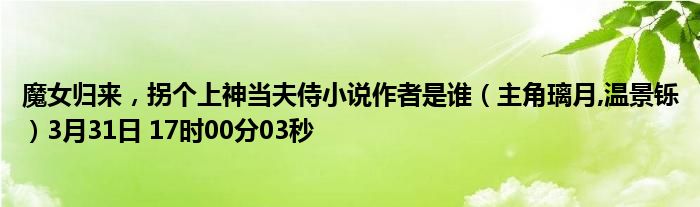 你們好,今天木子分享魔女歸來,拐個上神當夫侍小說作者是誰,跟隨我一起瞧瞧吧!