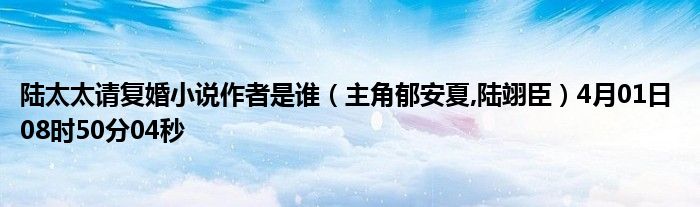 你們好,今天木子分享陸太太請(qǐng)復(fù)婚小說作者是誰,跟隨我一起瞧瞧吧!