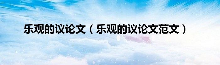 大家好,伊人來為大家解答以上問題。樂觀的議論文,樂觀的議論文范文很多人還不知道,現(xiàn)在讓我們一起來看看吧!