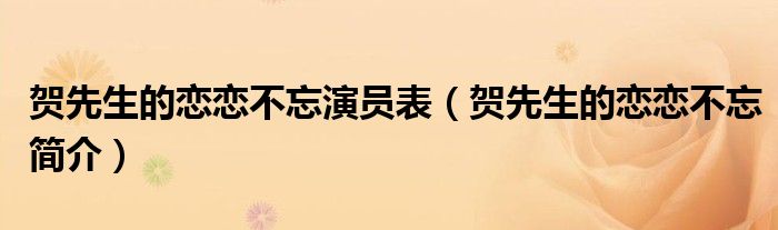 大家好,伊人來為大家解答以上問題。賀先生的戀戀不忘演員表,賀先生的戀戀不忘簡介很多人還不知道,現(xiàn)在讓我們一起來看看吧!