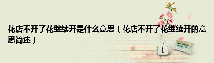 大家好,伊人來(lái)為大家解答以上問題?;ǖ瓴婚_了花繼續(xù)開是什么意思,花店不開了花繼續(xù)開的意思簡(jiǎn)述很多人還不知道,現(xiàn)在讓我們一起來(lái)看看吧!