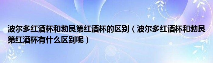 大家好,伊人來為大家解答以上問題。波爾多紅酒杯和勃艮第紅酒杯的區(qū)別,波爾多紅酒杯和勃艮第紅酒杯有什么區(qū)別呢很多人還不知道,現(xiàn)在讓我們一起來看看吧!