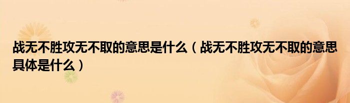 大家好,伊人來(lái)為大家解答以上問(wèn)題。戰(zhàn)無(wú)不勝攻無(wú)不取的意思是什么,戰(zhàn)無(wú)不勝攻無(wú)不取的意思具體是什么很多人還不知道,現(xiàn)在讓我們一起來(lái)看看吧!