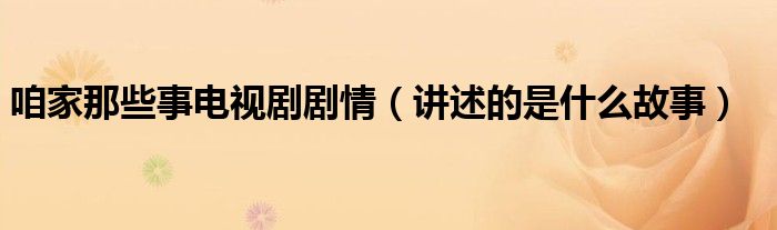 大家好,伊人來為大家解答以上問題。咱家那些事電視劇劇情,講述的是什么故事很多人還不知道,現(xiàn)在讓我們一起來看看吧!