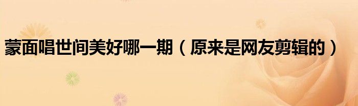 大家好,伊人來為大家解答以上問題。蒙面唱世間美好哪一期,原來是網(wǎng)友剪輯的很多人還不知道,現(xiàn)在讓我們一起來看看吧!