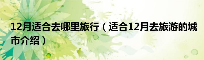 大家好,伊人來(lái)為大家解答以上問(wèn)題。12月適合去哪里旅行,適合12月去旅游的城市介紹很多人還不知道,現(xiàn)在讓我們一起來(lái)看看吧!