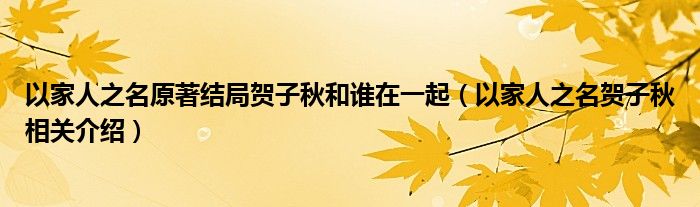 大家好,伊人來為大家解答以上問題。以家人之名原著結(jié)局賀子秋和誰在一起,以家人之名賀子秋相關(guān)介紹很多人還不知道,現(xiàn)在讓我們一起來看看吧!