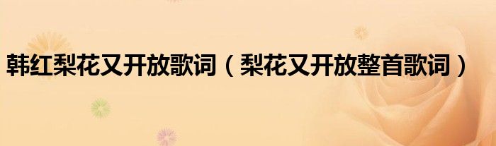 大家好,伊人來為大家解答以上問題。韓紅梨花又開放歌詞,梨花又開放整首歌詞很多人還不知道,現(xiàn)在讓我們一起來看看吧!