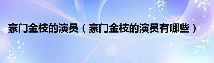 大家好,伊人來為大家解答以上問題。豪門金枝的演員,豪門金枝的演員有哪些很多人還不知道,現(xiàn)在讓我們一起來看看吧!