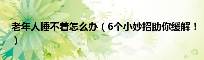 大家好,伊人來為大家解答以上問題。老年人睡不著怎么辦,6個小妙招助你緩解!很多人還不知道,現在讓我們一起來看看吧!