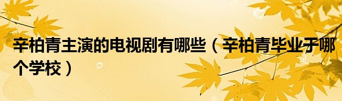 大家好,伊人來(lái)為大家解答以上問(wèn)題。辛柏青主演的電視劇有哪些,辛柏青畢業(yè)于哪個(gè)學(xué)校很多人還不知道,現(xiàn)在讓我們一起來(lái)看看吧!