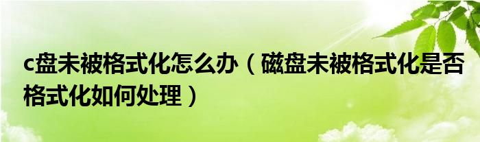 大家好,伊人來為大家解答以上問題。c盤未被格式化怎么辦,磁盤未被格式化是否格式化如何處理很多人還不知道,現(xiàn)在讓我們一起來看看吧!