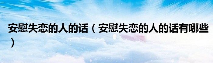 大家好,伊人來(lái)為大家解答以上問(wèn)題。安慰失戀的人的話,安慰失戀的人的話有哪些很多人還不知道,現(xiàn)在讓我們一起來(lái)看看吧!