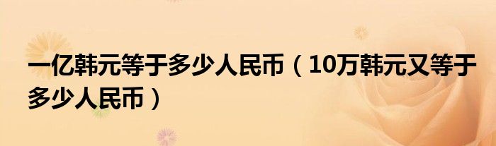 大家好,伊人來為大家解答以上問題。一億韓元等于多少人民幣,10萬韓元又等于多少人民幣很多人還不知道,現(xiàn)在讓我們一起來看看吧!