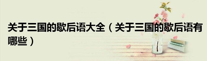 大家好,伊人來為大家解答以上問題。關(guān)于三國的歇后語大全,關(guān)于三國的歇后語有哪些很多人還不知道,現(xiàn)在讓我們一起來看看吧!