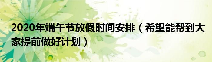 大家好,伊人來為大家解答以上問題。2020年端午節(jié)放假時間安排,希望能幫到大家提前做好計劃很多人還不知道,現(xiàn)在讓我們一起來看看吧!
