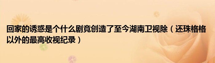 大家好,伊人來(lái)為大家解答以上問(wèn)題?;丶业恼T惑是個(gè)什么劇竟創(chuàng)造了至今湖南衛(wèi)視除,還珠格格 以外的最高收視紀(jì)錄很多人還不知道,現(xiàn)在讓我們一起來(lái)看看吧!