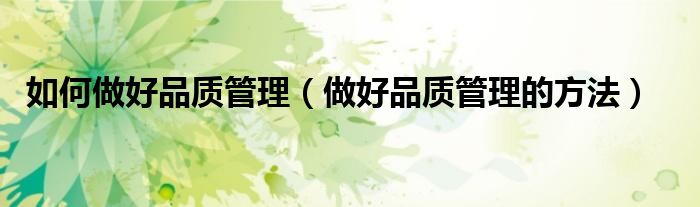 大家好,伊人來為大家解答以上問題。如何做好品質(zhì)管理,做好品質(zhì)管理的方法很多人還不知道,現(xiàn)在讓我們一起來看看吧!