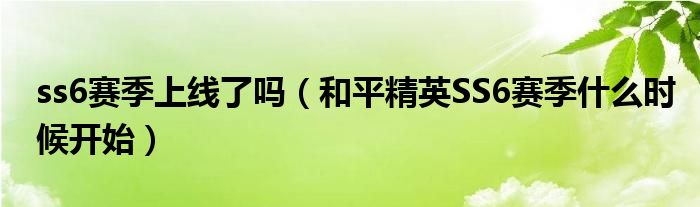 大家好,伊人來為大家解答以上問題。ss6賽季上線了嗎,和平精英SS6賽季什么時候開始很多人還不知道,現(xiàn)在讓我們一起來看看吧!