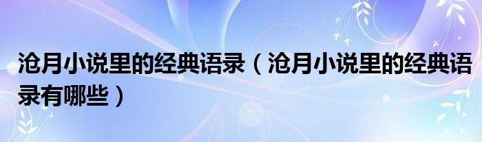 大家好,伊人來為大家解答以上問題。滄月小說里的經(jīng)典語錄,滄月小說里的經(jīng)典語錄有哪些很多人還不知道,現(xiàn)在讓我們一起來看看吧!