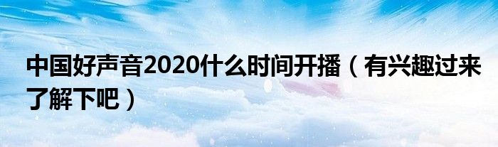 大家好,伊人來為大家解答以上問題。中國(guó)好聲音2020什么時(shí)間開播,有興趣過來了解下吧很多人還不知道,現(xiàn)在讓我們一起來看看吧!