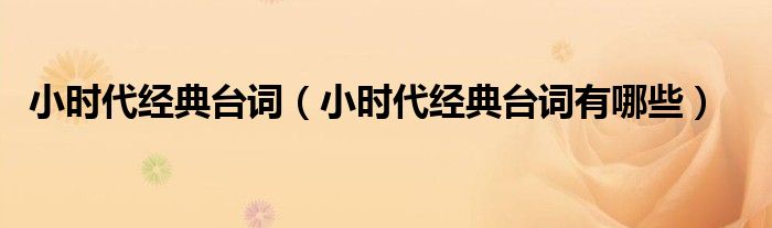 大家好,伊人來為大家解答以上問題。小時(shí)代經(jīng)典臺詞,小時(shí)代經(jīng)典臺詞有哪些很多人還不知道,現(xiàn)在讓我們一起來看看吧!